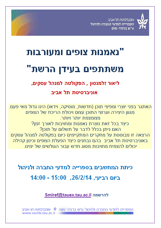 הרצאה: "נאמנות צופים ומעורבות משתתפים בעידן הרשת"